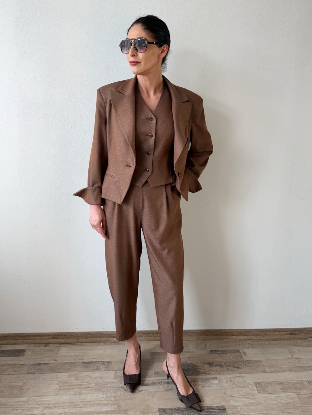 Moderné dámske nohavice s trendovým barrel strihom prinášajú dokonalú elegantnú kombináciu elegancie a pohodlia. Strih je mierne rozšírený v oblasti bokov a jemne sa zužuje smerom k spodnej časti, čím vytvára štýlovú siluetu. Nohavice majú vyšší pás s pútkami na opasok.