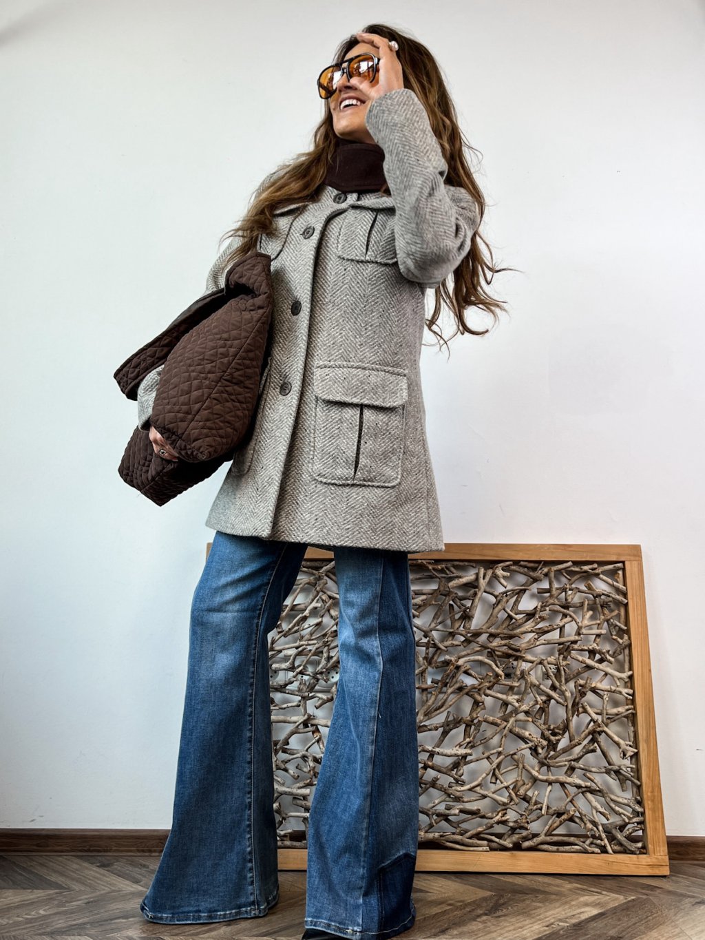 Dámsky kabát | zapínanie na gombíky | originálny stojačik
